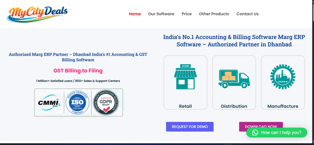 MyCityDeals Dhanbad is an Authorized Marg ERP Partner providing India’s No.1 Accounting, Billing & GST software solutions for businesses of all sizes. We help retailers, distributors and manufacturers manage billing, inventory, GST filing and financial reports in one powerful system.